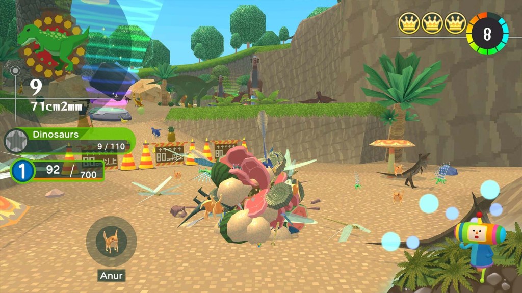 And these lend themselves to new characters and items to roll into your katamari ball. Ancient Egypt has mummies! The old west has cowboys! Ancient Greece has philosophers! The Jurassic period has dinosaurs! These models would have never been made for the older games because those were strictly about the detritus found in a Japanese home, in the street, a neighborhood, or outside. With this game, it’s more wild stuff you’re finding, which is a nice new paint job over a very tried and tested formula. Roll the ball and get bigger as fast as you can.