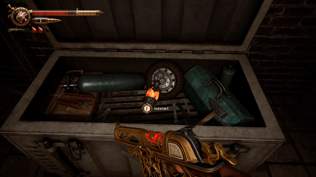 I appreciated that this mechanic meant I might not be scrounging for loot as much as other survival horror games, but I still ended up desperately searching for barrels to smash for more blood syringes. There are other items to loot, like coins and gas canisters to power a wheel that sharpens your knife, but I didn’t have access to any vendors or upgrade systems in the preview.